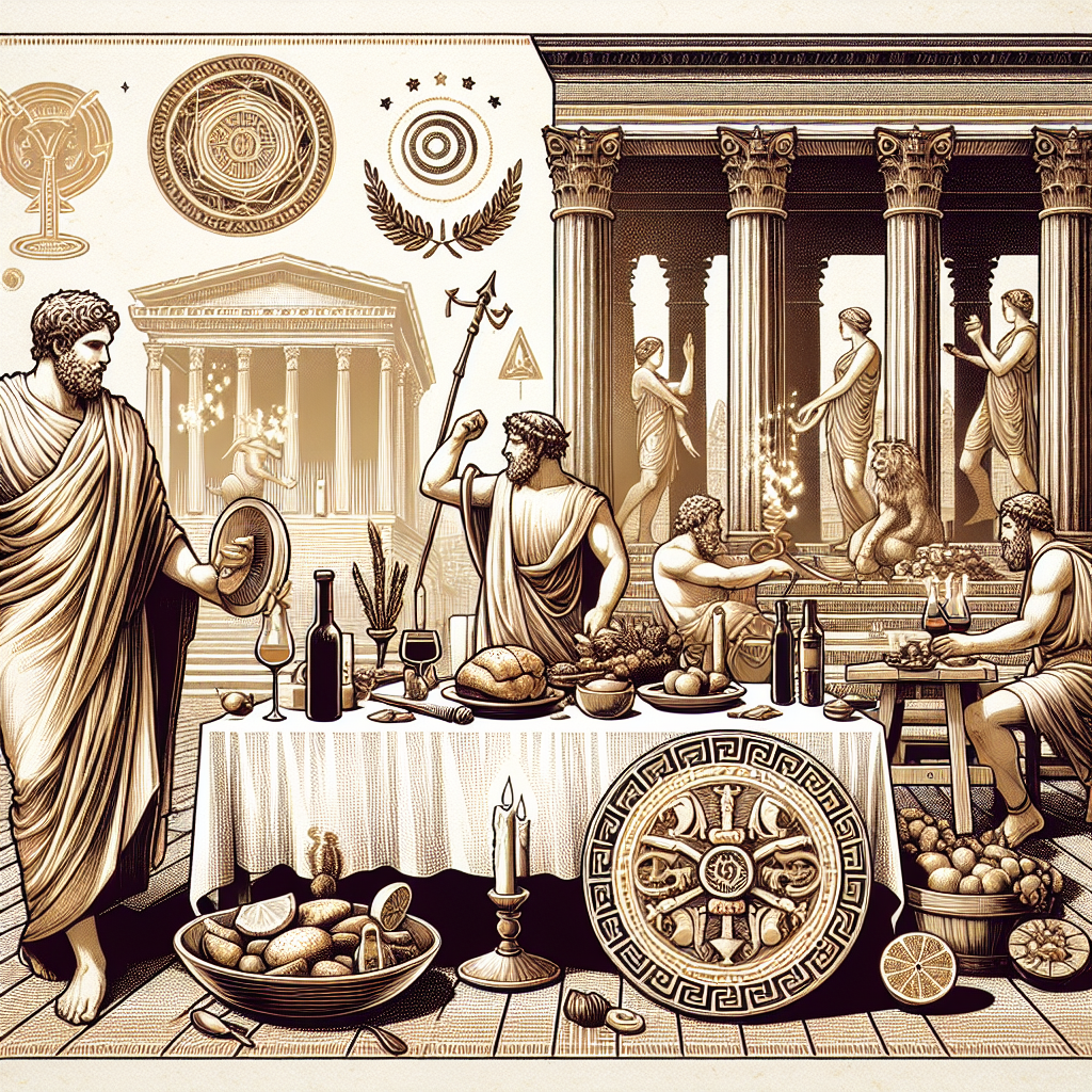 Feasting was central to the Saturnalia celebrations. Families and friends gathered to enjoy abundant meals, and the scents of roasting meats, spiced wines, and sumptuous desserts filled the air. Typical Saturnalian dishes included rich stews, pastries, and nuts. The ringing of bells marked the beginning of merrymaking, where participants engaged in games, singing, and dancing.